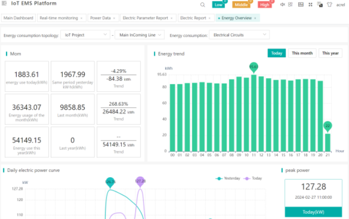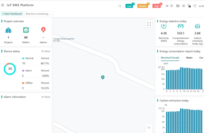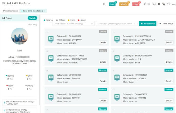 프로젝트 제품: ADW210 다중 회로 IoT 스마트 에너지 미터, ADW300 IoT 3상 무선 스마트 에너지 미터, ADL400 3상 DIN 레일 에너지 미터, AWT100 IoT 스마트 게이트웨이, Acrel IoT-EMS 플랫폼