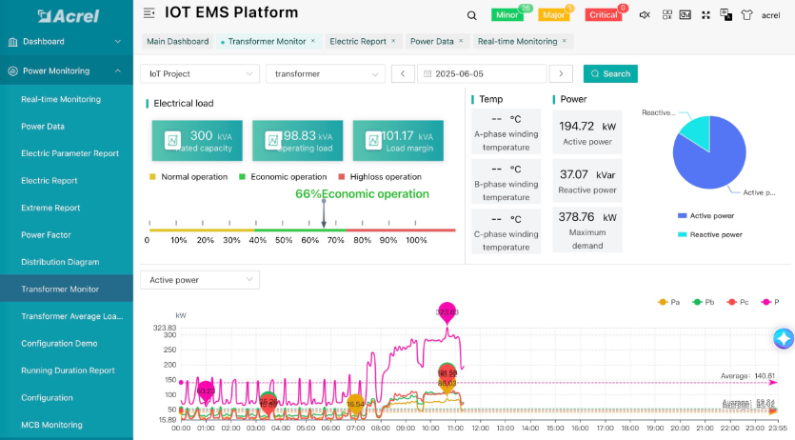 2. 변압기 작동 시각화: 플랫폼은 중요한 매개변수(전류, 전압, 역률 등)를 지속적으로 모니터링하여 변압기가 안전한 부하 한계 내에서 작동하도록 보장하고 과부하 및 손상 위험을 줄입니다.